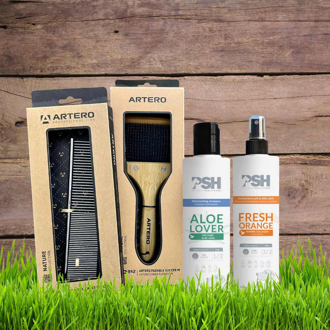 Todos los productos han sido meticulosamente escogidos para ayudarte a mantener el manto de tu peludete en casa. Una piel sana y un pelo cuidado harán que tu consentidín reciba achuchones infinitos.