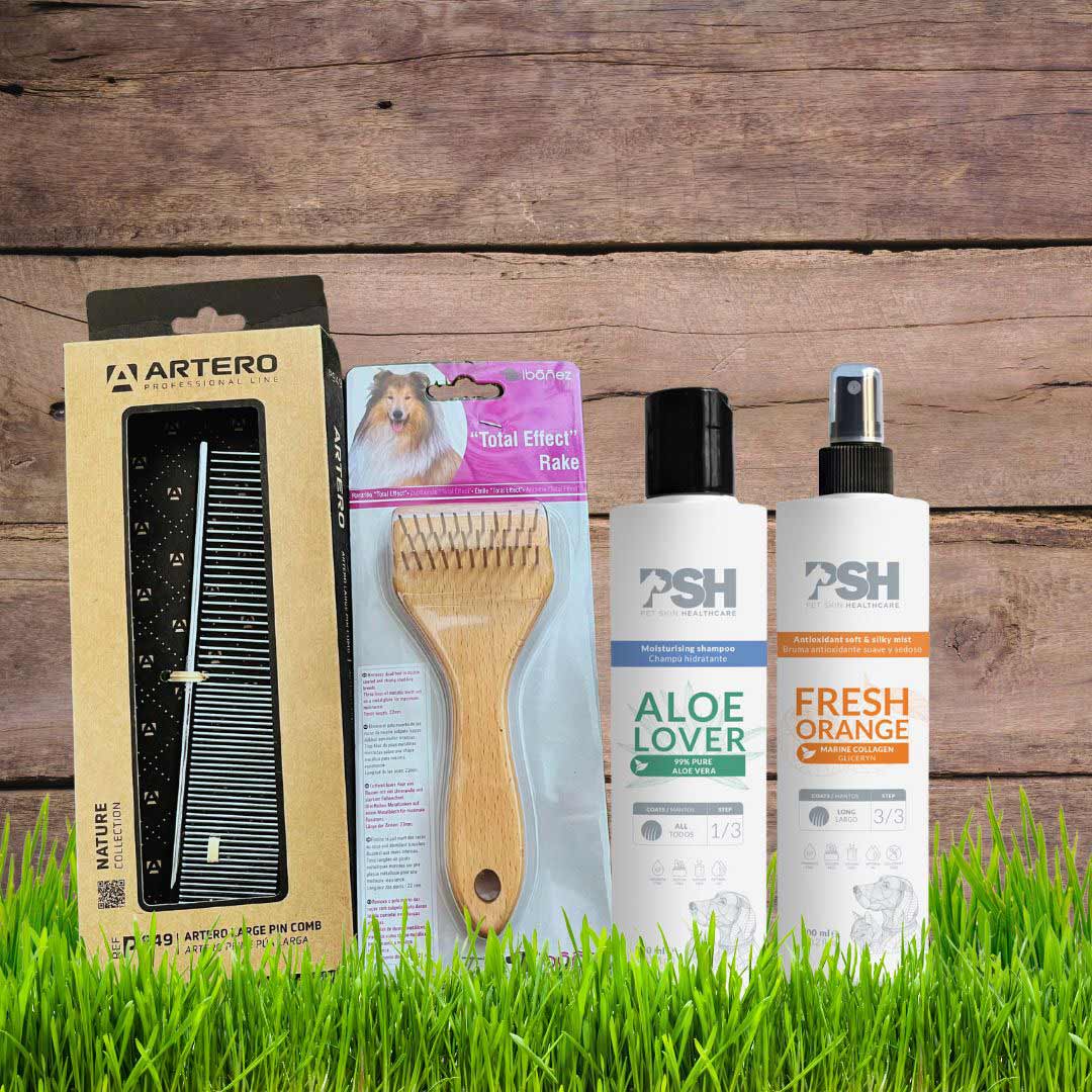 Todos los productos han sido meticulosamente escogidos para ayudarte a mantener el manto de tu peludete en casa. Una piel sana y un pelo cuidado harán que tu consentidín reciba achuchones infinitos.
