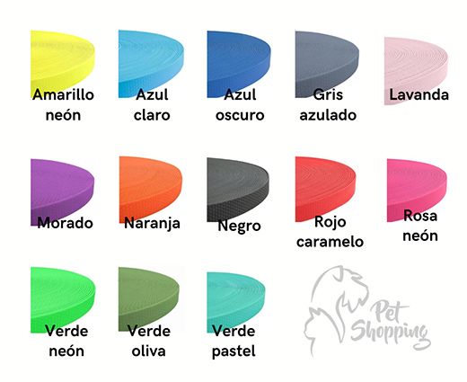 Correa de 16 mm: 180 Kg. de carga de rotura (perros pequeños y medianos poco brutitos).